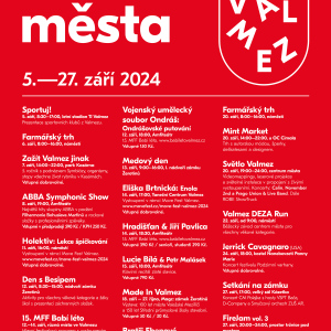 Přijďte prožít společně - lokálně, udržitelně, komunitně a tak nějak jinak.. 5. ročník s podnázvem "Symbiózy, organismy, stopy" vdechne život oblasti rybníku v Kasárnách. Akci pořádá spolek Valaši v pohybu ve spolupráci městem Valašské Meziříčí a dalšími organizacemi. Aktuální informace naleznete na Facebooku Zažít Valmez jinak 2024 nebo na www.zazitvalmezjinak.cz